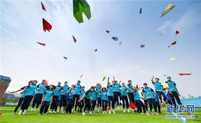 6月22日,河北省邯鄲市邯山區(qū)第一中學(xué)的高三學(xué)生將寫有自己夢想的紙飛機(jī)拋向空中。新華社記者 王曉 攝