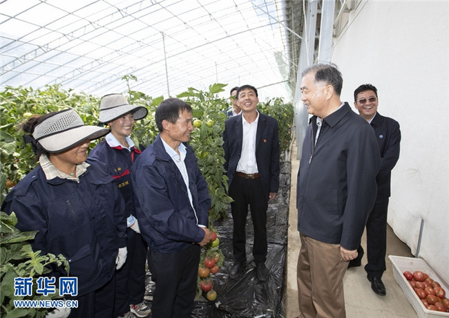 7月6日至8日,中共中央政治局常委、全國政協(xié)主席汪洋在西藏調研。這是7月7日,汪洋在日喀則白朗縣察看果蔬種植,與務工群眾交流。 新華社記者 黃敬文 攝