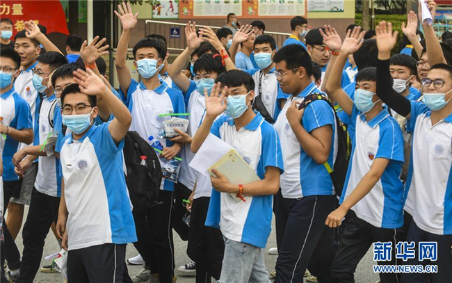 7月8日,河北文安縣第一中學(xué)考點(diǎn)的高考生走出考場(chǎng)。 當(dāng)日,全國(guó)部分地區(qū)2020年高考結(jié)束。 新華社記者 李曉果 攝