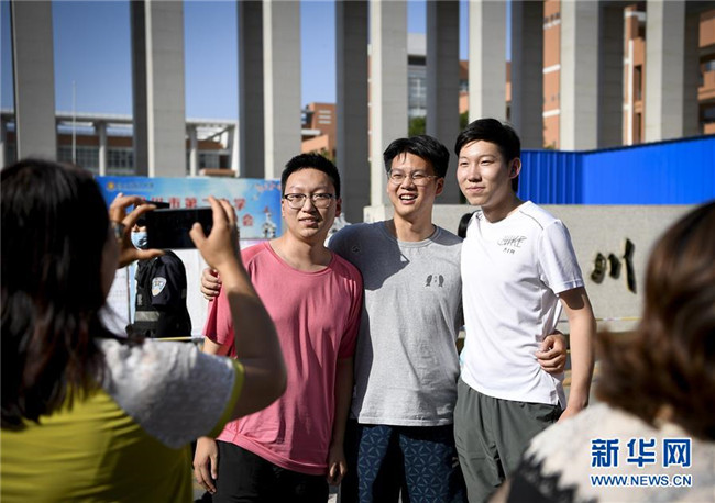 7月8日,考生在寧夏銀川市第二中學(xué)考點(diǎn)留影。 當(dāng)日,全國(guó)部分地區(qū)2020年高考結(jié)束。 新華社記者 馮開華 攝