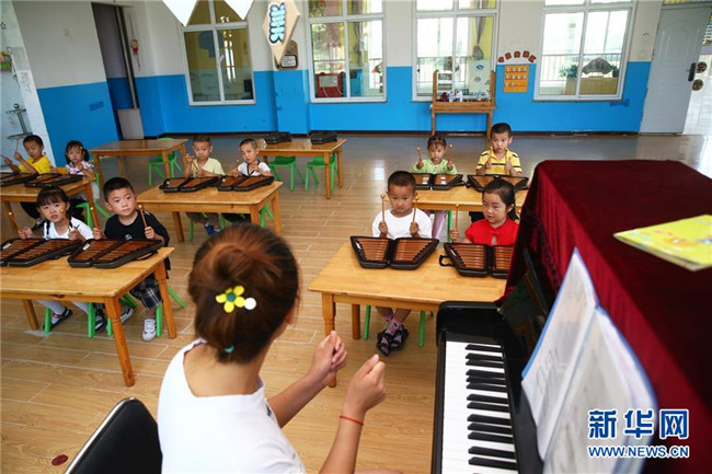 7月22日,學(xué)生在石嘴山市大武口區(qū)青少年學(xué)生校外活動(dòng)中心音樂教室內(nèi)學(xué)習(xí)鐘琴。新華社記者 賈浩成 攝