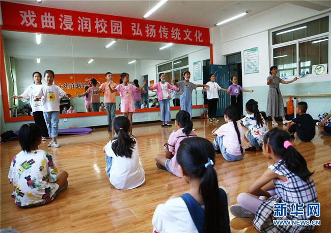 7月22日,學(xué)生在石嘴山市大武口區(qū)青少年學(xué)生校外活動(dòng)中心教室內(nèi)學(xué)習(xí)秦腔。新華社記者 賈浩成 攝