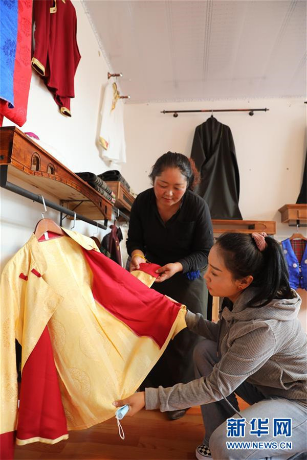 7月23日,在甘肅省甘南藏族自治州夏河縣??奇?zhèn)崗岔村的扶貧車(chē)間內(nèi),卓瑪吉(右)和扶貧車(chē)間負(fù)責(zé)人研究成衣款式。崗岔村是甘肅省甘南藏族自治州夏河縣??奇?zhèn)的一個(gè)牧業(yè)村,平均海拔3000米以上。2018年,在夏河縣文明辦工作的卓瑪吉開(kāi)始擔(dān)任駐村幫扶工作隊(duì)隊(duì)長(zhǎng),每年都有200多天待在草原上。兩年來(lái),卓瑪吉帶領(lǐng)大家開(kāi)辦扶貧車(chē)間,發(fā)展特色產(chǎn)業(yè),聯(lián)系勞務(wù)輸出。為了讓村民更全面地了解精準(zhǔn)扶貧政策,卓瑪吉登門(mén)宣講政策。為了提高村容村貌,卓瑪吉發(fā)動(dòng)大家開(kāi)展廁所革命和庭院環(huán)境評(píng)比,積極響應(yīng)甘南藏族自治州“全域無(wú)垃圾”創(chuàng)建行動(dòng)。她還從縣城請(qǐng)來(lái)醫(yī)生,為村民舉辦健康講座,在全村婦女中開(kāi)展“兩癌篩查”。如今,崗岔村變成了干凈、整齊、富裕、美麗的生態(tài)文明村,提前實(shí)現(xiàn)了整村脫貧。談起心愿,卓瑪吉說(shuō):“要讓草原和草原上的人都變得更美。”新華社發(fā)(杜哲宇攝)