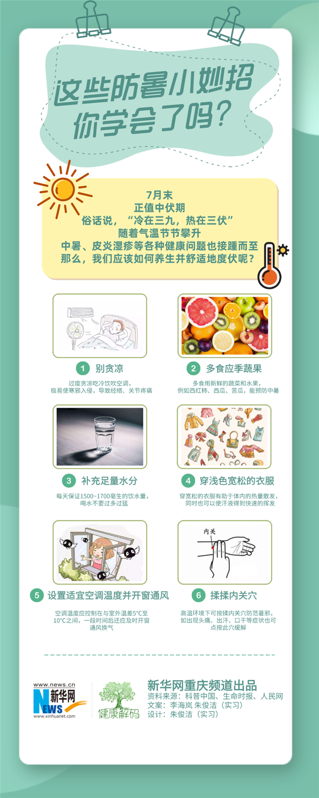 原標(biāo)題:【健康解碼】這些防暑小妙招,你學(xué)會(huì)了嗎?