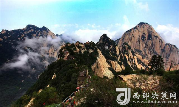 如今,在華山北峰、蒼龍嶺一帶東望華山著名景觀"仙人仰臥",即是開山導(dǎo)河功成后、仰臥入睡化為山峰的巨靈神。西峰屈嶺南端有蔚靈神觀察地形時(shí)留下的蔚靈足跡;首陽山根有巨靈神開山時(shí)的腳?。蝗A山東峰崖壁上有五指分明的巨靈仙掌,此仙掌已被世人公認(rèn)為關(guān)中八景之首。