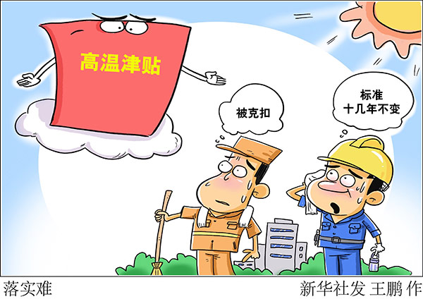 記者發(fā)現(xiàn),自防暑降溫措施管理辦法2012年印發(fā)以來(lái),各地都制定了高溫津貼標(biāo)準(zhǔn),發(fā)放有了政策保障。但一些地區(qū)標(biāo)準(zhǔn)多年不變,一些地方標(biāo)準(zhǔn)過(guò)于復(fù)雜,有的還按實(shí)際溫度區(qū)別發(fā)放,影響具體的執(zhí)行操作。