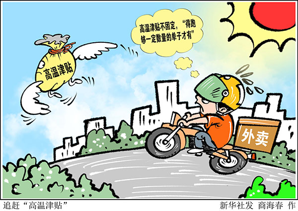 采訪中,有的勞動(dòng)者反映,往年可以拿到高溫津貼,今年要么沒(méi)動(dòng)靜,要么到手的大幅“縮水”。某平臺(tái)外賣騎手小李告訴記者,去年還有高溫津貼可拿,今年到目前什么都沒(méi)有。另一名騎手小朱說(shuō),高溫津貼不固定,“得跑夠一定數(shù)量的單子才有”。還有其他平臺(tái)的一些騎手表示沒(méi)聽說(shuō)過(guò)有津貼。