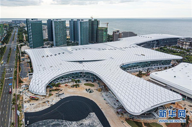 這是8月25日拍攝的正在施工中的海南國際會展中心二期項目。 新華社記者 蒲曉旭 攝