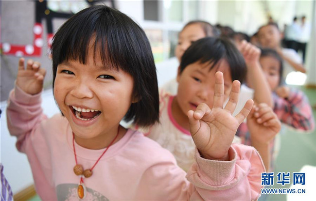 8月25日,在新落成的靈口鎮(zhèn)中心幼兒園里,即將入園的孩子們在做游戲。新華社記者陶明攝