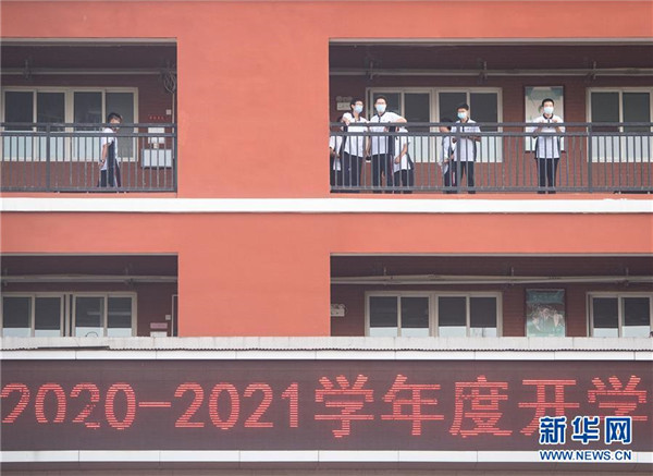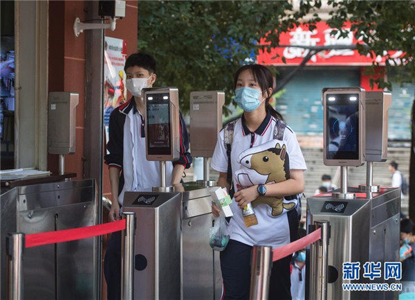 9月1日,武漢中學的學生進入校園。當日,武漢市2842所中小學、幼兒園迎來開學,涉及學生139.9萬人,百萬學子重返校園。新華社記者肖藝九攝