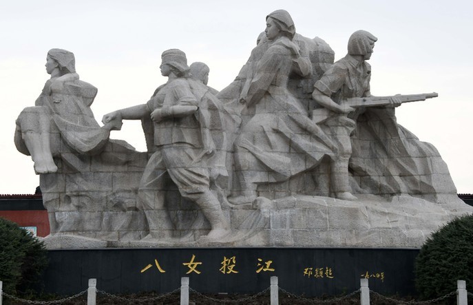 她們是東北抗日聯(lián)軍第5軍婦女團(tuán)的政治指導(dǎo)員冷云,班長胡秀芝、楊貴珍,戰(zhàn)士郭桂琴、黃桂清、王惠民、李鳳善和被服廠廠長安順福。1938年10月,該部在牡丹江地區(qū)烏斯渾河渡口與日偽軍千余人遭遇。已行至河邊準(zhǔn)備渡河的婦女團(tuán)8名成員,為掩護(hù)大部隊(duì)突圍,毅然放棄渡河,在冷云率領(lǐng)下,分成3個(gè)戰(zhàn)斗小組,與日偽軍展開激戰(zhàn)。她們主動(dòng)吸引日偽軍火力,使部隊(duì)主力得以迅速擺脫敵人的攻擊,但她們卻被敵人圍困于河邊。在背水作戰(zhàn)至彈盡的情況下,面對(duì)日偽軍逼降,女戰(zhàn)士們誓死不屈。她們毀掉槍支,挽臂涉入烏斯渾河,高唱著《國際歌》,集體沉江,壯烈殉國。犧牲時(shí),她們年齡最大的冷云23歲,最小的王惠民才13歲。