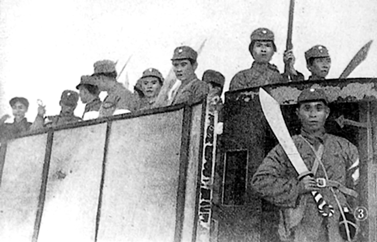 大刀隊(duì)奔赴前線。新華社資料片