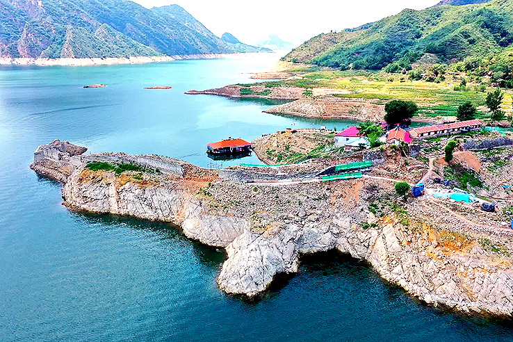 戚輝介紹,由于水庫(kù)位于燕山山脈沉降地帶東南構(gòu)造帶與華夏構(gòu)造帶的復(fù)合部位,地質(zhì)構(gòu)造復(fù)雜,四周的石灰?guī)r、白云巖及少部分頁(yè)巖巖體,由于流水侵蝕與褶皺斷裂作用,塑造出一系列奇峰怪石與陡崖懸壁,是北國(guó)極為罕見(jiàn)的山水風(fēng)光。
