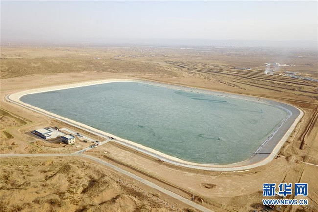 這是古浪縣黃花灘生態(tài)移民區(qū)1號(hào)調(diào)蓄水池(3月5日攝,無(wú)人機(jī)照片)。 新華社記者 范培珅 攝