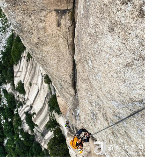 自然巖壁結(jié)組攀登源自軍事特戰(zhàn)項(xiàng)目,它就像是巖壁上的“馬拉松”,攀登大巖壁路線,攀巖隊(duì)伍需要使用吊帳和拖包等更多安全裝備完成多日攀登。從最基礎(chǔ)的攀登動(dòng)作練習(xí),到完成近千米的大巖壁攀登,這不僅將考驗(yàn)運(yùn)動(dòng)員們的攀巖技術(shù),還要挑戰(zhàn)他們?cè)趲r壁上的生存能力。此次自然巖壁結(jié)組攀登的巖壁甄選白云峰,其位于華山北峰云臺(tái)峰之北,石白如雪,一年四季白云繚繞,隨云飄浮而升降起伏,如海中的大魚(yú)隨浪翻滾,極其壯觀,而攀巖隊(duì)員們此次就需要在這600多米高的巖壁線路上生活至少2天。