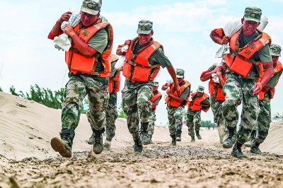 7月18日,江西九江柴桑區(qū)江洲鎮(zhèn)江新洲堤團(tuán)洲村突發(fā)險(xiǎn)情,陸軍第71集團(tuán)軍某旅工兵連黨員突擊隊(duì)迅速出動(dòng)。新華社發(fā)