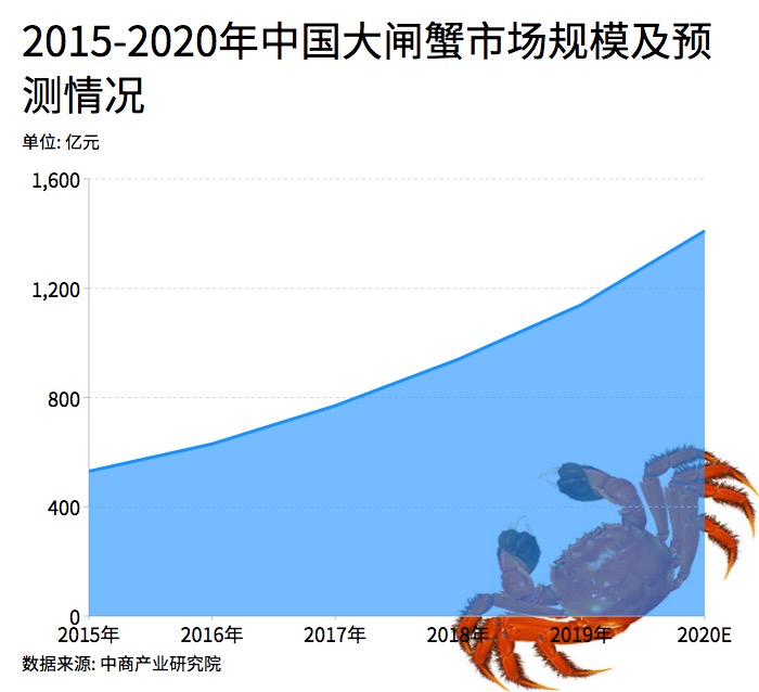 大閘蟹又被稱為中華絨螯蟹,分布在我國(guó)北起遼河南至珠江,其中以長(zhǎng)江水系產(chǎn)量最大。近年來(lái)隨著消費(fèi)者對(duì)大閘蟹的喜愛程度的提高,其市場(chǎng)需求不斷增長(zhǎng)。據(jù)相關(guān)數(shù)據(jù)統(tǒng)計(jì)2018年大閘蟹產(chǎn)量高達(dá)80萬(wàn)噸左右,產(chǎn)業(yè)規(guī)模2019年突破億元,年增速約20%。據(jù)預(yù)測(cè),到2020年我國(guó)大閘蟹市場(chǎng)規(guī)模或接近1500億元。