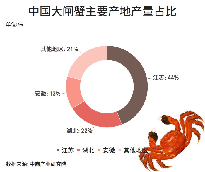 大閘蟹的十大產(chǎn)區(qū)中,江蘇占據(jù)半壁江山,固城湖、洪澤湖、太湖、高郵湖、陽(yáng)澄湖產(chǎn)區(qū)都在江蘇,江蘇總產(chǎn)量約占全國(guó)的44%,市場(chǎng)最受歡迎的陽(yáng)澄湖大閘蟹與洪澤湖大閘蟹都是產(chǎn)自江蘇。
