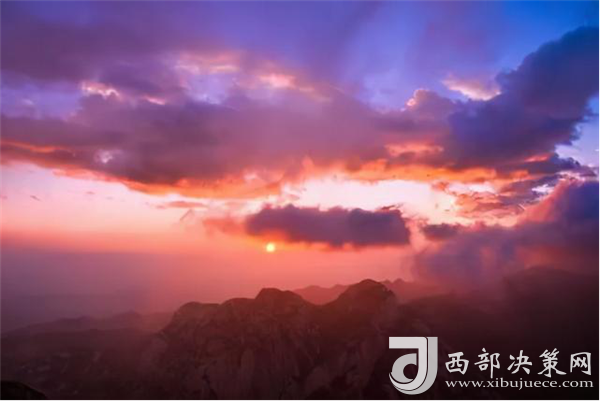華山日出亦被列為華山自然風(fēng)光中的重要景觀之一。是時(shí),但見(jiàn)夜幕自東方悄然隱退,晨曦初露,漸漸霞光瑰麗,云源奔涌。瞬間,一輪火球噴薄而出,繼而光芒四射,氣象萬(wàn)千,整個(gè)世界大放光明,游人身心為之一振。待云霧散盡,蒼松翠柏,則更加清麗悅目,美妙神奇。故而,游名山者必登華山,登華山者必觀日。