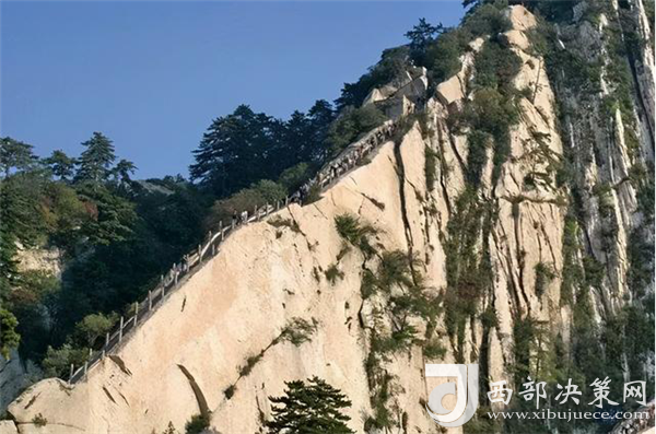 華山的路奇,“自古華山一條路”是一道奇觀,這條路或越澗跨溝,或臨崖盤(pán)山,或入崖間深谷,或走峭壁嶺脊,或平坦或曲陡,或?qū)挸ɑ颡M窄,曲折變化,跌宕起伏,把人帶入意境深邃的萬(wàn)般景象之中。