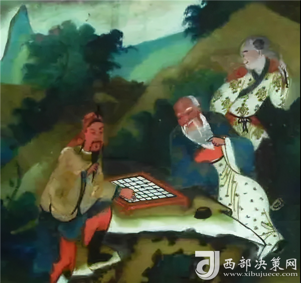趙匡胤得知自己將來有天子之位,信口開河輸了華山,日后定遭世人譴責(zé),心中悔恨,忙去搶奪文約。不料陳摶老祖輕輕一口氣,文約就飛過谷澗,貼到棋亭對面三鳳山的石壁上去了。