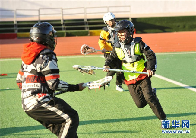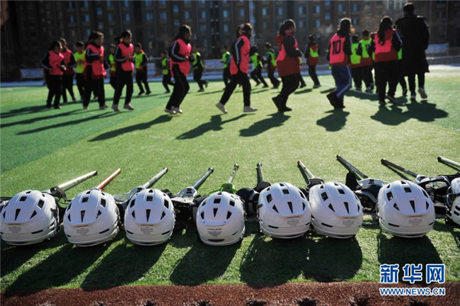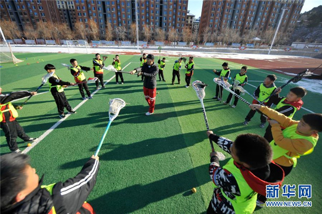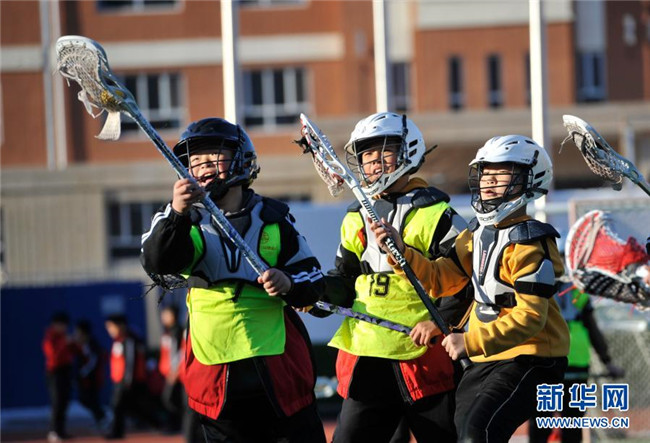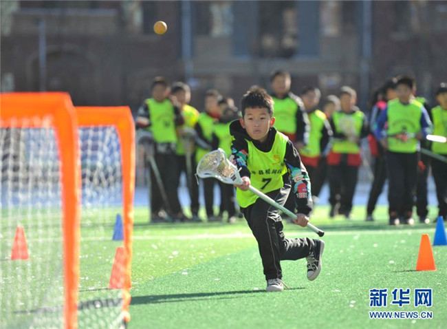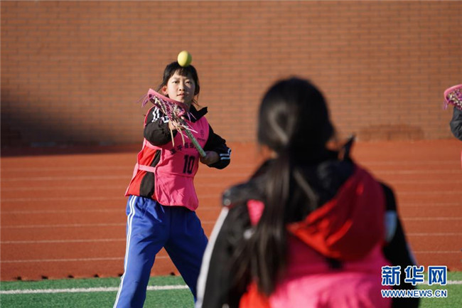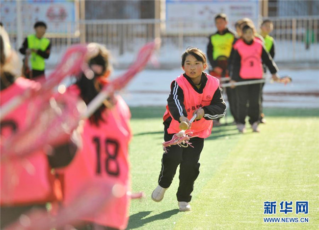 12月1日,在灤平縣第五小學,棍網(wǎng)球隊員在進行訓練。新華社發(fā)(王立群 攝)