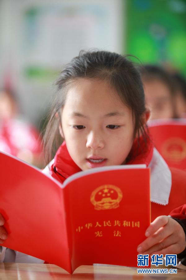 12月3日,河北唐山遵化市第二實驗小學(xué)學(xué)生在誦讀憲法。