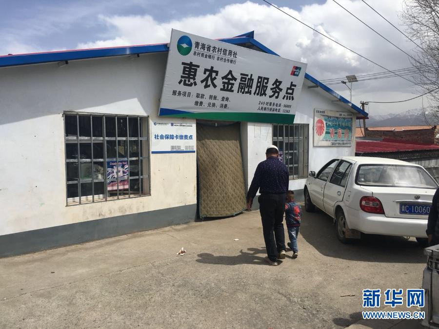 青海省海北藏族自治州門源回族自治縣西沙河村村民前往該村的惠農(nóng)金融服務點辦理業(yè)務(2018年5月3日攝)。新華社記者 徐文婷 攝
