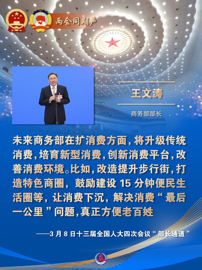 新的一年,消費表現(xiàn)會如何?我國在擴大開放方面將邁出哪些新步伐?8日舉行的全國兩會“部長通道”上,商務(wù)部部長王文濤回應(yīng)了商務(wù)領(lǐng)域熱點問題。