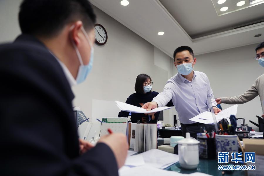 3月5日,2021年全國(guó)兩會(huì)代表委員意見建議梳理匯總和轉(zhuǎn)辦回應(yīng)工作專班的工作人員在忙碌。新華社記者 李木子 攝