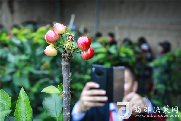 在櫻桃棚內(nèi),紅色的櫻桃一簇一簇簇?fù)碓跇渖希诰G油油的樹葉間顯得嬌艷欲滴。路寶告訴記者,子長的櫻桃可以趕在其他產(chǎn)地的櫻桃未上市前售賣,因此市場行情好,加上保存期長,適合現(xiàn)代物流的發(fā)展,從而產(chǎn)生了比較好的收益。“我們這個櫻桃可以在其他櫻桃還沒有上市的時候,借助現(xiàn)代物流賣到全國各地,甚至可以賣到櫻桃的主產(chǎn)區(qū)去。”