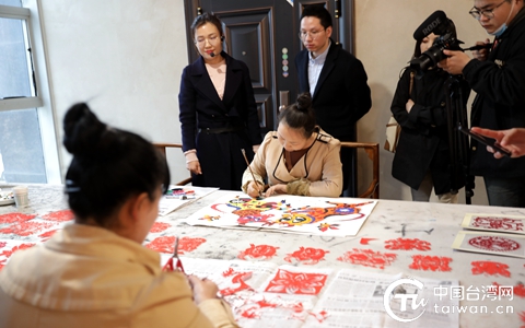 文物館邀請的民間藝術家現(xiàn)場剪紙、繪畫 (中國臺灣網(wǎng) 李杰 攝)