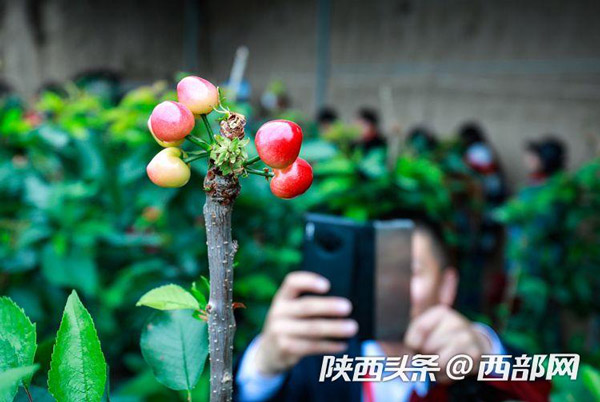 在櫻桃棚內,紅色的櫻桃一簇一簇簇擁在樹上,在綠油油的樹葉間顯得嬌艷欲滴。路寶告訴記者,子長的櫻桃可以趕在其他產地的櫻桃未上市前售賣,因此市場行情好,加上保存期長,適合現代物流的發(fā)展,從而產生了比較好的收益。“我們這個櫻桃可以在其他櫻桃還沒有上市的時候,借助現代物流賣到全國各地,甚至可以賣到櫻桃的主產區(qū)去。”