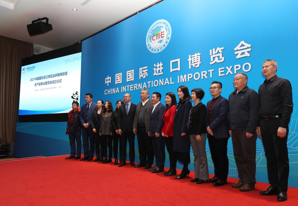 1月20日,進(jìn)博會參展商聯(lián)盟農(nóng)產(chǎn)品專業(yè)委員會成員企業(yè)代表與嘉賓在專委會成立儀式上合影。新華社記者方喆 攝