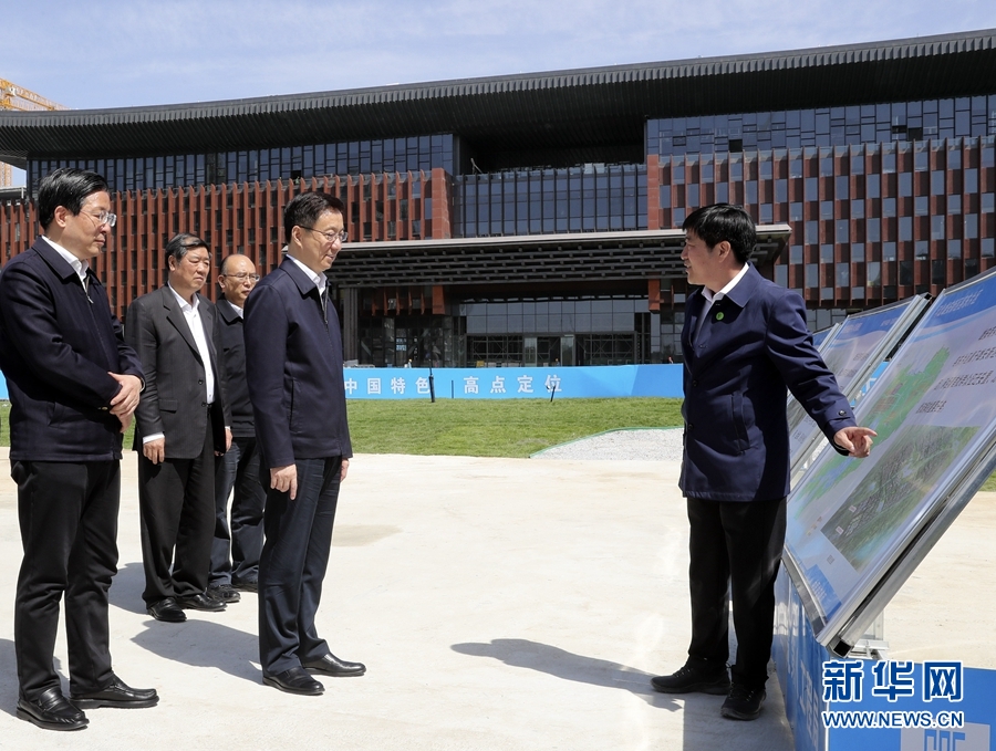 4月28日,中共中央政治局常委、國務院副總理韓正到河北雄安新區(qū)調研,主持召開京津冀協(xié)同發(fā)展領導小組會議并講話。這是韓正在容東片區(qū)雄安商務服務中心項目現場考察。新華社記者 丁林 攝