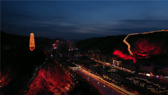 “民宿是第二屆夜經(jīng)濟夜生活節(jié)的重要板塊。”2020年,延安舉辦夜經(jīng)濟夜生活節(jié)期間,寶塔區(qū)副區(qū)長李延武就曾表示,寶塔民宿要堅持“特色化”,在彰顯紅色革命文化優(yōu)勢及綠色生態(tài)、黃土文化優(yōu)勢上下功夫,把延安民宿最優(yōu)、最亮的產(chǎn)品推介給廣大游客及消費者。夜幕下的延安。