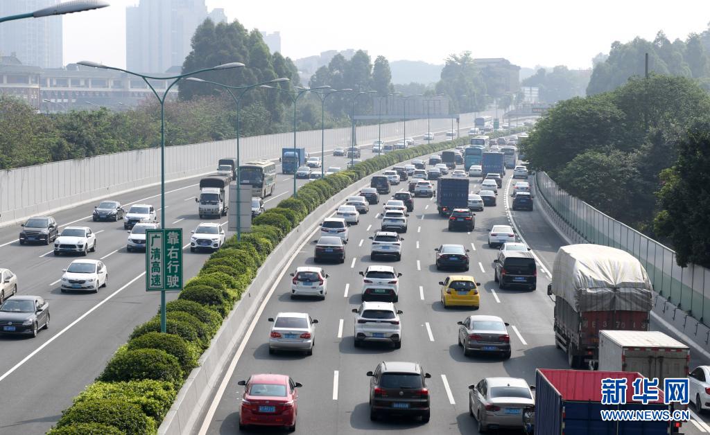 5月1日,廣州環(huán)城高速公路上車行緩慢。當日,廣州周邊高速公路迎來出行高峰。文化和旅游部5月5日晚間公布2021年“五一”假期旅游市場數(shù)據(jù)。統(tǒng)計顯示,5月1日至5日,全國國內(nèi)旅游出游2.3億人次,同比增長119.7%,按可比口徑恢復(fù)至疫前同期的103.2%。新華社記者 盧漢欣 攝