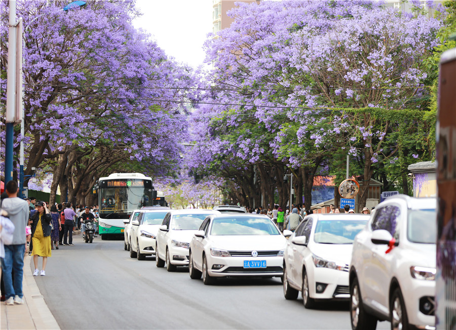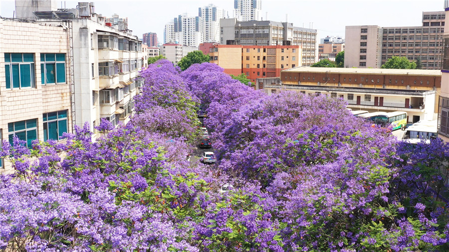 【“飛閱”中國(guó)】用藍(lán)花楹敲開(kāi)昆明夏天的門