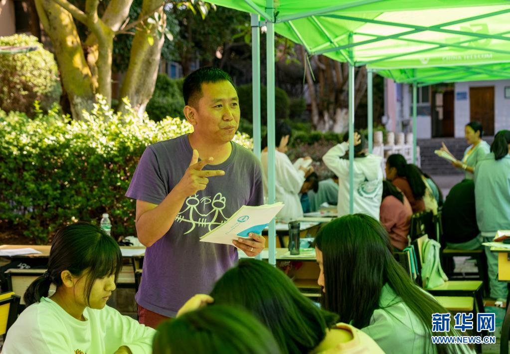 5月24日,漾濞一中老師(中)在輔導(dǎo)高三年級學(xué)生。新華社記者陳欣波攝