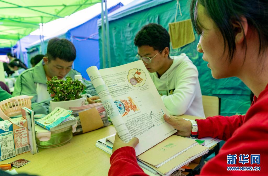 5月24日,漾濞一中高三年級學(xué)生在帳篷下學(xué)習(xí)。新華社記者胡超攝