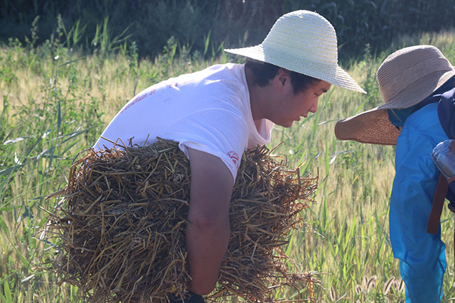 由于資金有限、環(huán)境限制,最窘迫的時候,志愿者們曾經(jīng)十幾個人擠在當(dāng)?shù)鼐用窦业姆块g打地鋪,半夜有的時候熱得不行,很多人還會偷偷從房間里跑出來,直接在院子里露天睡,曾經(jīng)遇到合作方突然將草方格和麥草垛以高于市場價的價格出售給他們,劉智卓就和同學(xué)們選擇自己制作草方格,沒有治沙工具,他們就挨家挨戶去向鄉(xiāng)親們借。