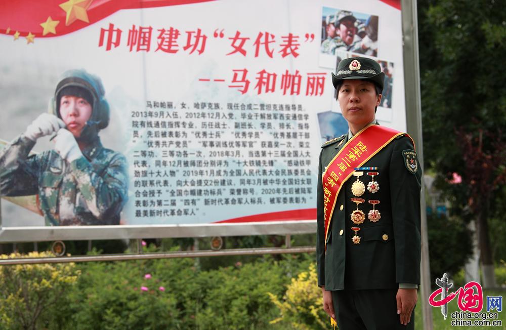 2020年,在中國人民解放軍建軍93周年之際,中央宣傳部、中央軍委政治工作部聯(lián)合發(fā)布13位“最美新時代革命軍人”。來自新疆軍區(qū)某合成團坦克二連政治指導(dǎo)員馬和帕麗獲此稱號。
