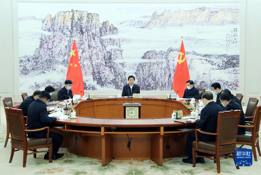 11月12日,中共全國人大常委會黨組舉行會議,傳達學習習近平總書記在黨的十九屆六中全會上的重要講話和全會精神。中共中央政治局常委、全國人大常委會委員長、黨組書記栗戰(zhàn)書主持會議并講話。新華社記者 姚大偉 攝