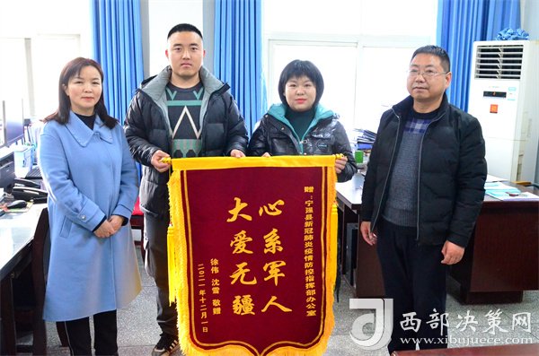 西部決策網(wǎng)訊“我能夠與家人團(tuán)圓,能夠照顧我的妻子和母親,能夠見到剛出生不久的孩子,給你們添了不少麻煩,真的太感謝你們了!”12月1日下午,在四川綿陽(yáng)某部隊(duì)服役回家探親、家住寧強(qiáng)縣漢源街道辦二道河社區(qū)的徐偉與他的妻子及姐姐一同來(lái)到縣疫情防控辦,將一面印有“心系軍人 大愛無(wú)疆”的錦旗送到工作人員的手中時(shí)激動(dòng)地說(shuō),“你們?cè)诎倜χ心転槲覀冎?,你們是全心全意為人民服?wù)的好干部……我們制作了一面錦旗略表一下謝意,請(qǐng)收下!”