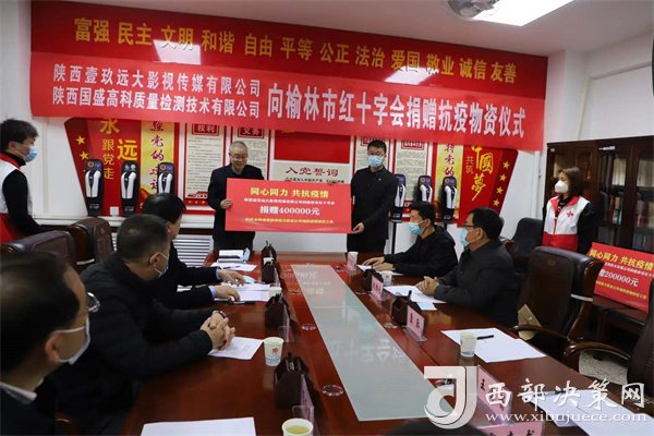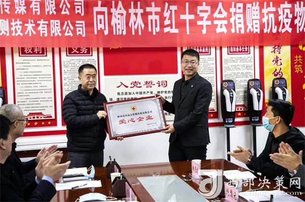 西部決策網(wǎng)訊 12月17日,榆林市政府會(huì)議室舉行疫情防控捐贈(zèng)儀式,我市兩家愛心企業(yè)向市委、市政府、榆林市紅十字會(huì)捐贈(zèng)抗疫物資,本次活動(dòng)有榆林市副市長楊東明、市政府副秘書長崔紅軍、市紅十字會(huì)專職副會(huì)長惠斌、市衛(wèi)健委疾控科科長高婷婷、陜西國盛高科質(zhì)量檢測技術(shù)有限公司總經(jīng)理王蕾蕾、陜西壹玖遠(yuǎn)大影視傳媒有限公司總經(jīng)理康樂、北京泛亞智庫國際咨詢中心鄉(xiāng)村振興部部長兼陜西壹玖遠(yuǎn)大影視傳媒有限公司高級(jí)顧問劉團(tuán)元,市紅十字會(huì)全體人員參加,市衛(wèi)健委黨組書記、主任高懷和主持。市政府副秘書長崔紅軍、市紅十字會(huì)專職副會(huì)長惠斌、市衛(wèi)健委黨組書記、主任高懷和主持、副市長楊東明和市政府副秘書長崔紅軍出席并向捐贈(zèng)企業(yè)頒發(fā)愛心企業(yè)獎(jiǎng)牌。