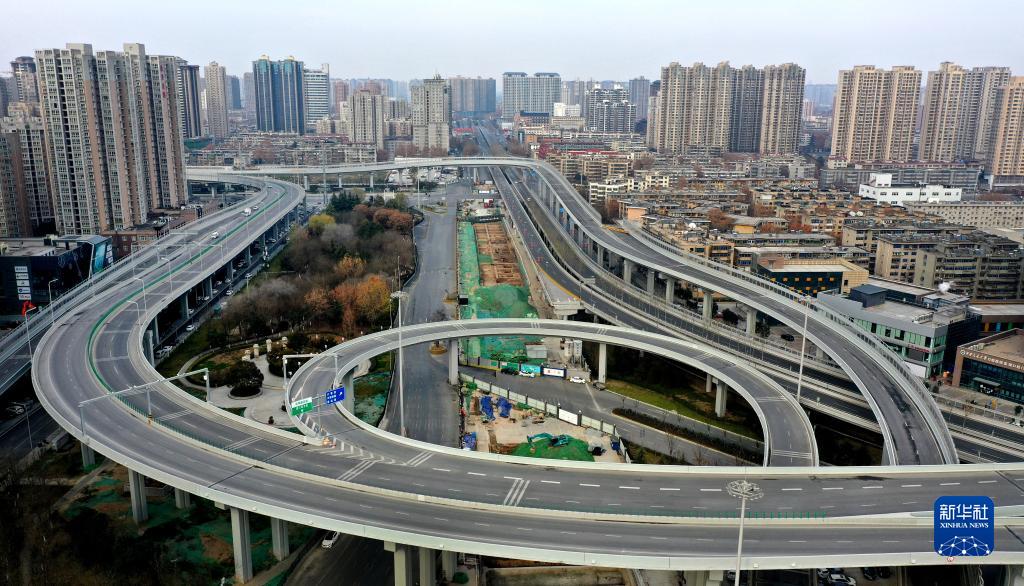 12月28日拍攝的西安市南二環(huán)一處立交橋(無(wú)人機(jī)照片)。新華社記者 陶明 攝