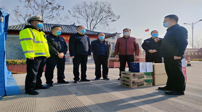 西部決策網(wǎng)訊(韓宗憲)1月2日,寶雞市鳳翔區(qū)委常委、宣傳部部長(zhǎng)賈亞斌赴西寶高速鳳翔出口、旬鳳高速西鳳口、橫水尹家塢卡點(diǎn)檢查指導(dǎo)新冠肺炎疫情防控工作,為節(jié)假日仍?shī)^戰(zhàn)在一線的執(zhí)勤民警、醫(yī)務(wù)人員和志愿服務(wù)者送去自熱米飯、方便面、純牛奶等慰問品。鳳翔區(qū)民政局、區(qū)慈善協(xié)會(huì)負(fù)責(zé)同志陪同慰問。