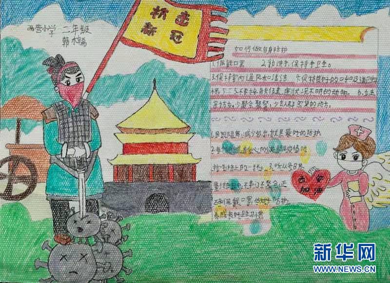 1月2日,西安市鄠邑區(qū)甘亭中心學校的孩子們用最自己的方式宣傳居家防疫知識,用手中的畫筆表達他們對抗疫英雄的贊美,為抗疫一線的英雄加油!為西安加油!(張思思 趙影超 王展榮)