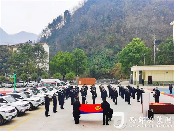 副縣長、公安局黨委書記、局長裴新民向鎮(zhèn)巴縣公安局黨員突擊隊授旗