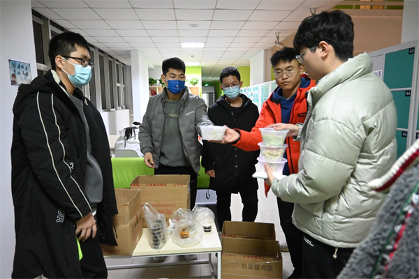 南校區(qū)家屬區(qū)開始封閉管理,一些租住在家屬院的已退宿延期畢業(yè)學(xué)生由于不會(huì)做飯,就餐成了難題,于是,輔導(dǎo)員楊笑宇化身“外賣小哥”,前往食堂、超市、面包店采購(gòu)一大包食品和生活用品,透過家屬區(qū)的大門交到學(xué)生手中,解決了學(xué)生的溫飽難題。